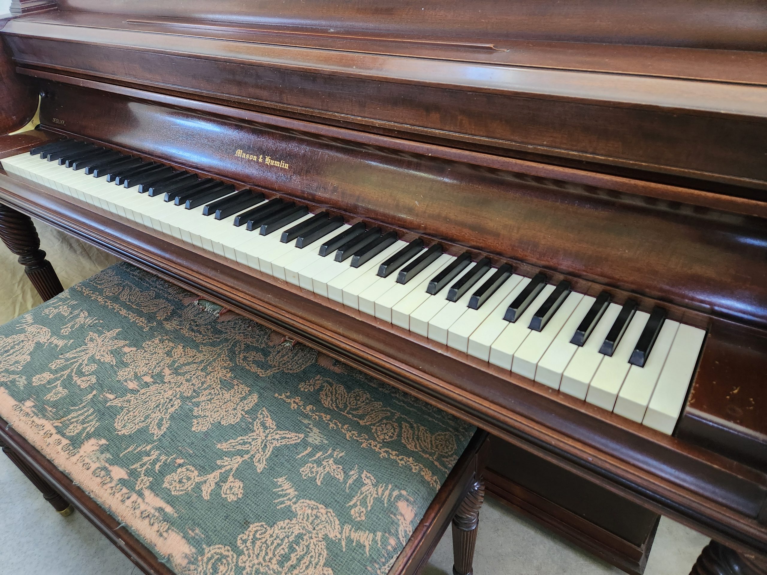 This 42″ Mason & Hamlin Upright Piano was built in 1941. New hammers were recently installed to maintain instrument quality. It has ivory keys. Comes with a matching bench.
