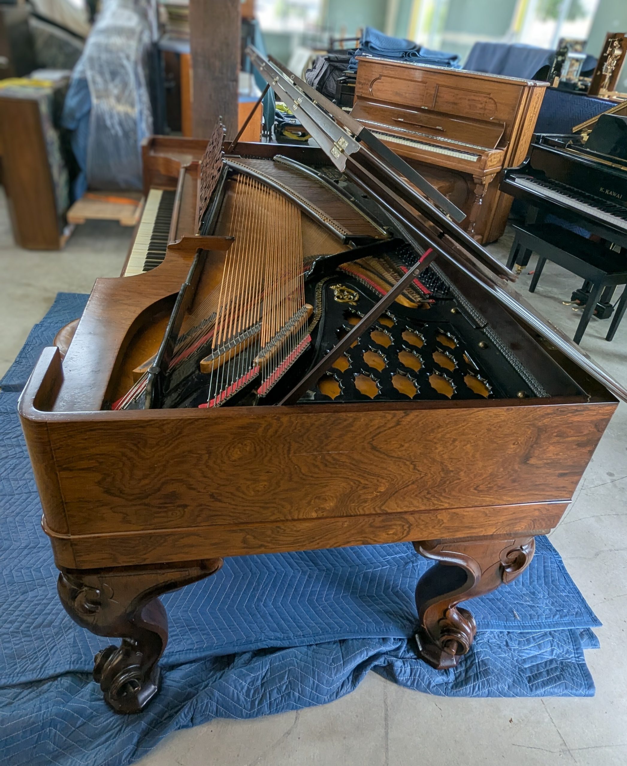 Here in Salem, Oregon the owners of this piano also owned a second Steinway Square grand piano and they were referred to as “The twins”. Experienced Piano Technician Matt Hirschfelder has had the privilege of tuning these two specialized square heirloom pianos side by side for years.