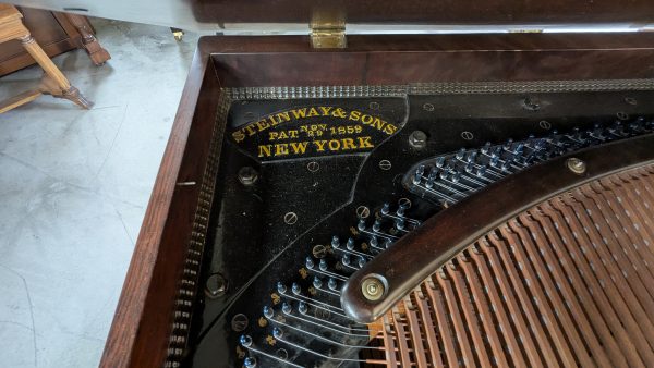 1877 Steinway Square Grand #35275 is part of a wild story about Steinway, a twin, and decimation. Steinway New York, had moved into the market of square grand pianos and shortly after manufacture decided that the design and quality did NOT meet their expectation. They spent the next several years destroying the square grand pianos that had not been sold. Rumor was they had burned many of these instruments to heat the factory. However, these unique pianos were the beginning of an era where Steinway installed the metal plate.